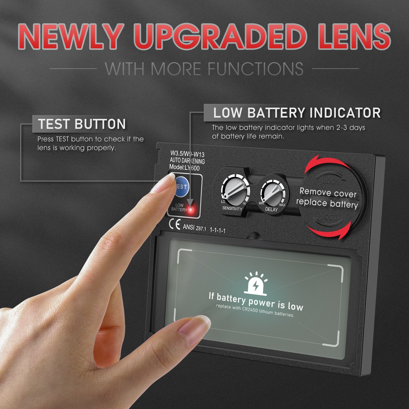 Introducing a welding helmet designed with your eye health and comfort in mind. Featuring cutting-edge Blue Light Blocking Technology, this helmet effectively filters out harmful high-energy blue light rays while allowing the less harmful spectrum to pass through. This advanced protection ensures long-lasting safety and comfort for your eyes, making it a must-have accessory for extended welding sessions. Protect your vision while achieving precision in every task.